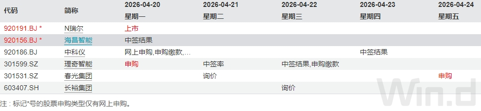 本周将有3只新股发行,其中创业板有2只,北交所有1只,具体来看,4月20日发行的是中科仪、理奇智能;4月24日发行的是春光集团。