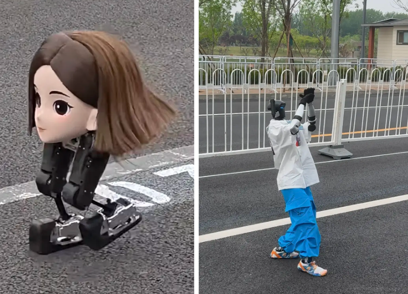 有长了脚的豆包,踩着俩订书机就敢上赛道,被赐名豆脚;有有留脏辫的摇滚选手,一路晃出自己的BGM;还有张杰演唱会同款机器人,跑到一半干脆停下来表演,逐渐在人类的赞美声中迷失了自我,忘了自己是来比赛的。