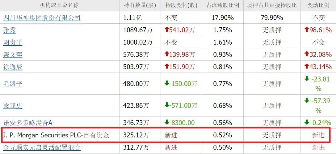 年报,J.P摩根新进325万股,位列第九大流通股东。