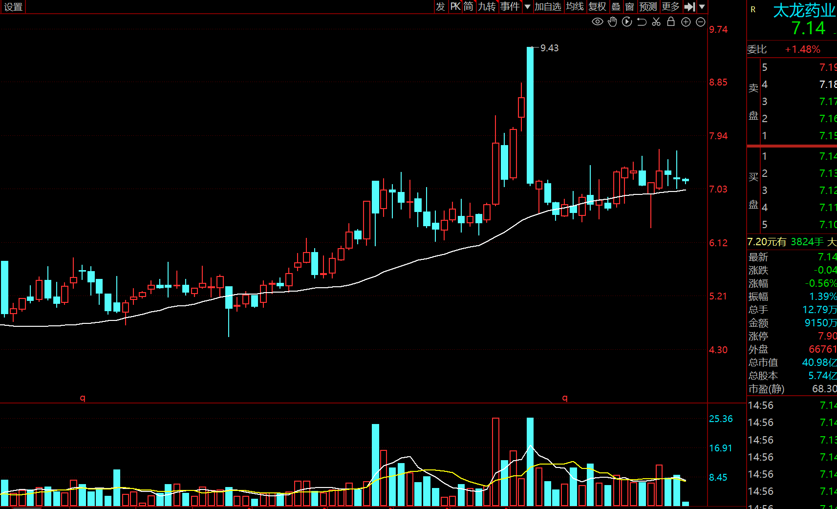 第三家,太龙药业,现价7.14,流通市值40亿。