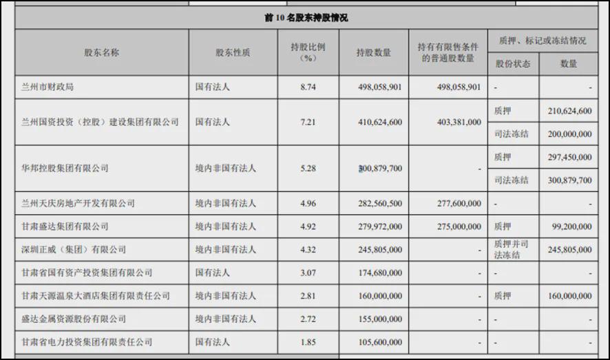 综合计算,前十大股东中处于质押及司法冻结状态的股份合计占兰州银行总股本比例已超过21%。