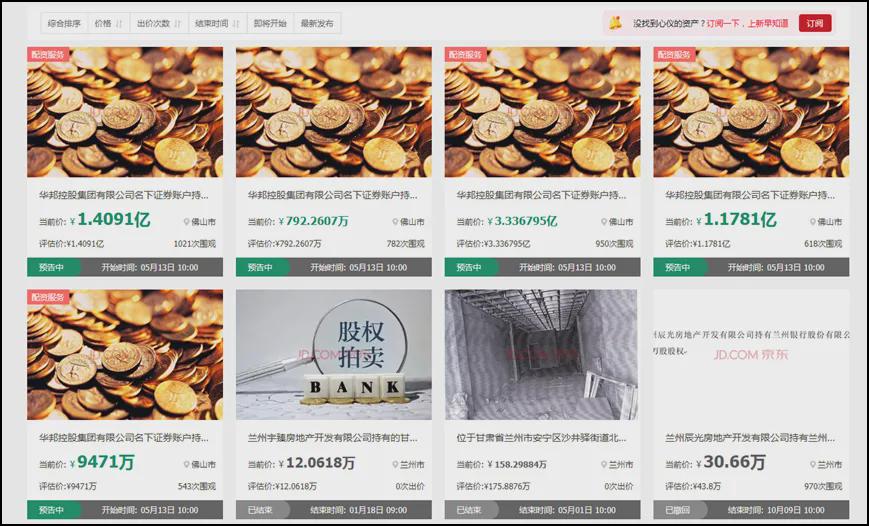 5月13日,兰州银行第三大股东华邦控股集团所持3.01亿股(占总股本5.28%)将正式在京东司法拍卖平台开拍。这些股份是其持有的兰州银行全部股份,拆分为5个资产包,起拍总价约6.96亿元。