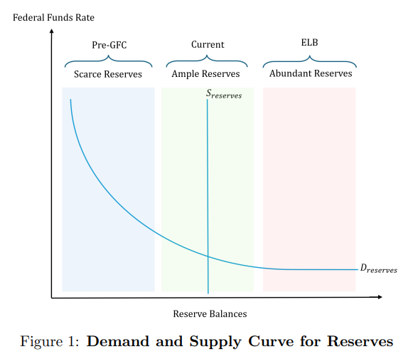 传统框架认为,联储缩表的约束来自"准备金供给触及需求曲线陡峭区间"——一旦供给收紧至临界点,隔夜利率就会失控。因此,联储只能等准备金降至"稀缺"状态后被动停止缩表。2019年9月的"回购市场地震",正是这一逻辑的现实演绎。