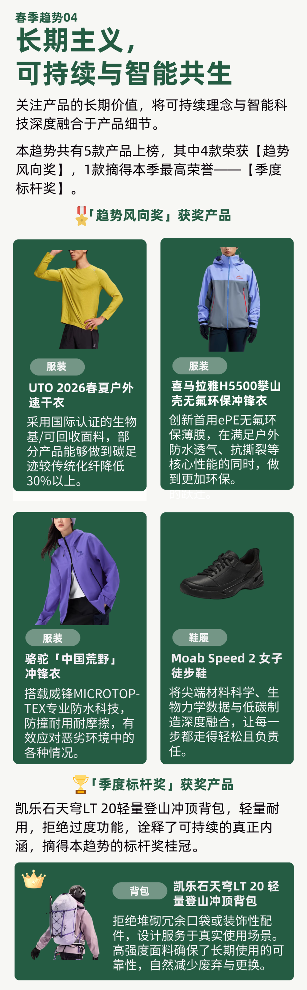 4.可持续落地:可持续不再是营销话术的比拼,而是产品碳足迹与材料溯源的真功夫。