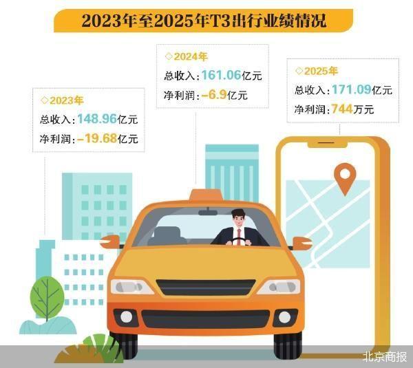 抛开订单来源、销售成本等,T3出行近三年营收呈稳步增长态势,毛利率从0.4%涨至13%,2025年实现盈利。