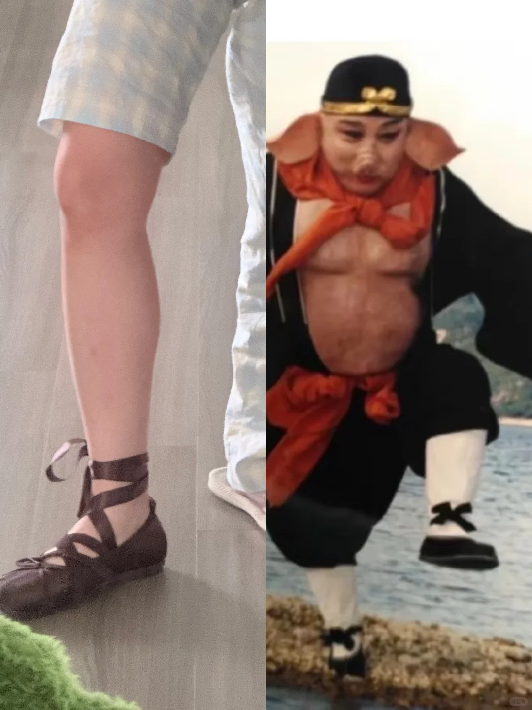 首先是这双鞋对身材的要求十分高。Rockfish的芭蕾平底鞋几乎没有跟,视觉上本身就容易显腿短,配上绑带设计更是雪上加霜。一位网友在社交平台上表示,身高不足一米六,体重超过一百斤,身材不是麻杆的女生穿这双鞋可要慎重了,一不小心就会COS猪八戒。