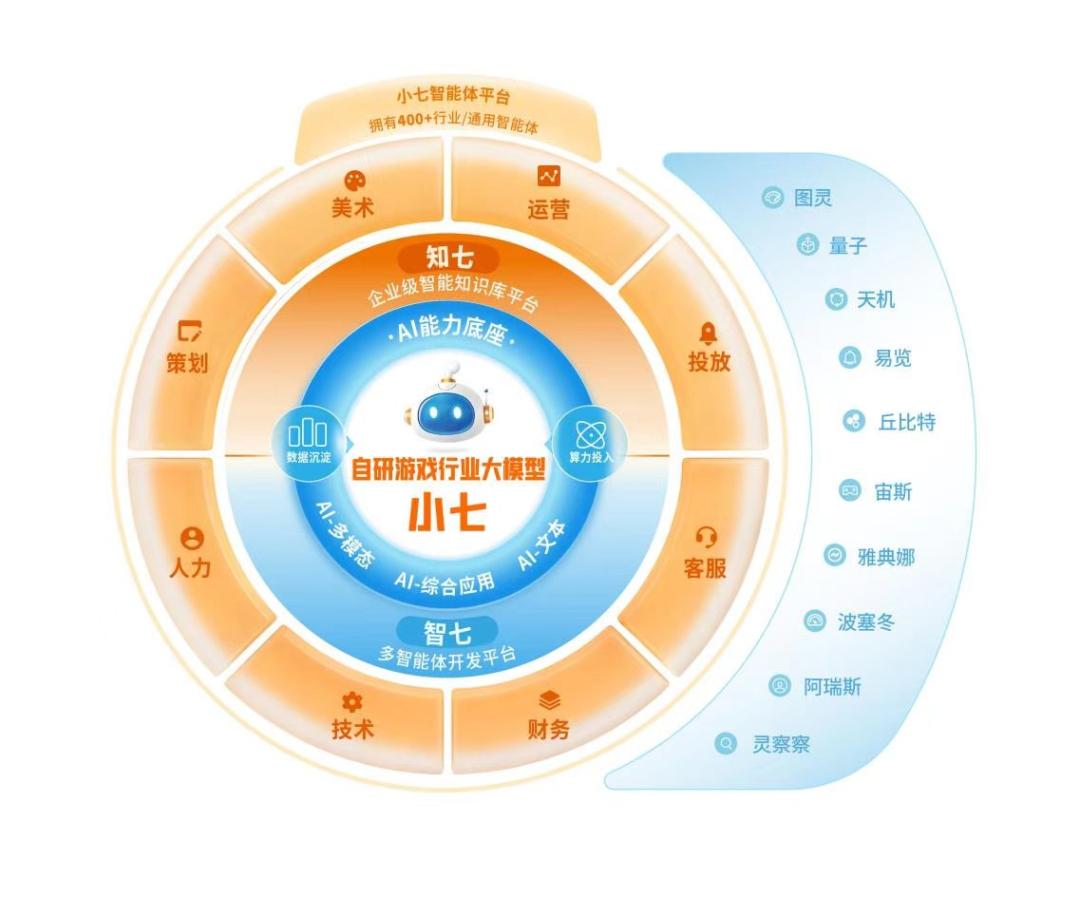 自主研发的"小七大模型",是广东省首批通过国家网信办生成式人工智能服务备案的游戏垂类大模型之一。据三七互娱技术中心数据副总裁王传鹏透露,内部构建的智能体数量超过400个,日均被员工"敲门"提问超过15000次。