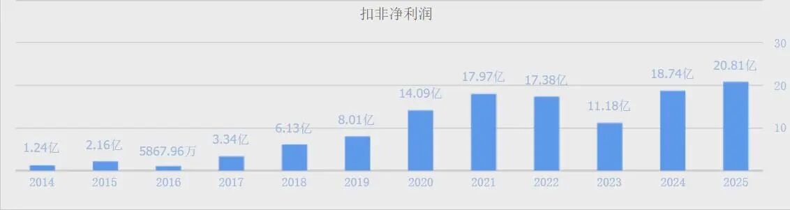 扣非净利润在今年创出新高。