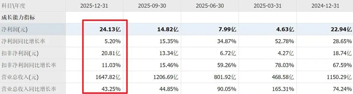 今年公司营收大增43%,但利润仅增5.2%,扣非净利润增11.03%,有规模效应,但利润较低。