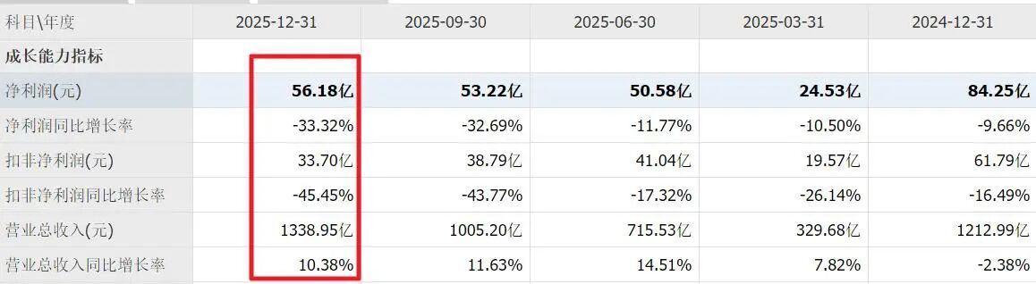 公司年报营收增10%,但主营利润下降接近50%。去年四季度扣非主营利润亏7个亿,今年亏5个亿,同比有所减亏。