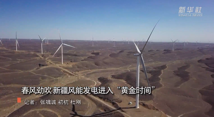春季的新疆哈密市,北风劲吹。在绵延超过1.6万平方公里的“十三间房”风区,每年大风日数超过200天,目前在这片戈壁滩上,已建设成片的风力发电机组。眼下,正进入风力发电的“黄金时间”,长达百米的风机叶片快速转动,为电网输送源源不断的清洁能源。