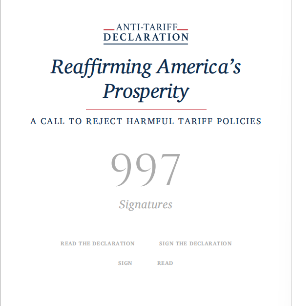 签署者名单包括诺贝尔经济学奖得主詹姆斯·赫克曼(James Heckman)和弗农·史密斯(Vernon Smith)、前共和党参议员菲尔·格拉姆(Phil Gramm),以及小布什总统经济顾问委员会主席格里高利·曼昆(N. Gregory Mankiw)等重量级人士。