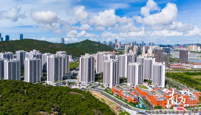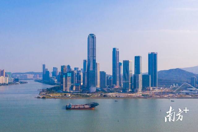 日落时分,俯瞰云海下的澳门与横琴金融岛。南方+拍客 陈烁明 摄