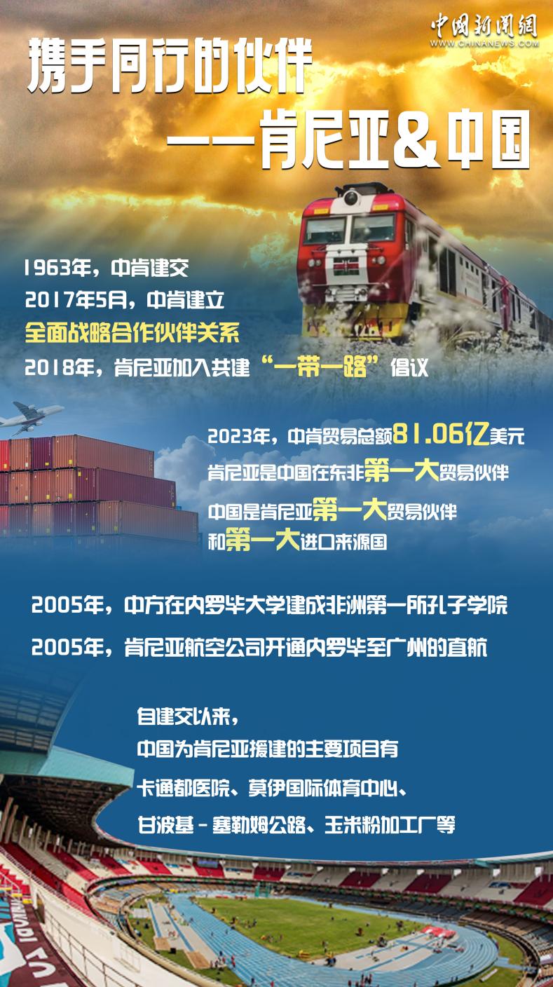 多年来,中国一直是肯最大投资来源国、贸易伙伴和工程承包方,为肯经济社会发展作出积极贡献。2023年,中肯贸易总额达81.06亿美元。目前肯尼亚约有400家中资企业,中肯合作在许多领域都取得了丰硕的成果。