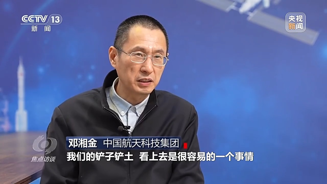 中国航天科技集团 邓湘金:我们的铲子铲土,看上去是很容易的一个事情,但在38万公里的角度去看还是非常困难的。我们采用了新的“人在回路”的控制方案,就是把一些人的知识和一些智能的学习算法,集成在地面的解算软件里面,当天上钻取的过程中,地面系统就能够根据这些知识快速识别出天上现在是什么样的状况,能让操作员精准快速地做出正确决策。