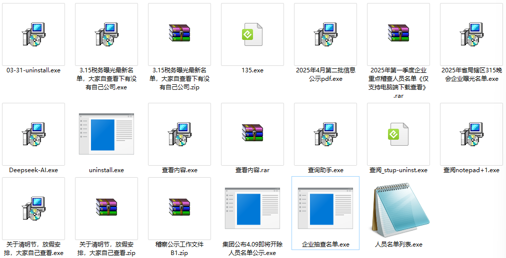 近日,国家计算机病毒应急处理中心和计算机病毒防治技术国家工程实验室依托国家计算机病毒协同分析平台(virus.cverc.org.cn)在我国境内连续捕获一系列针对我国网络用户,特别是财务和税务工作人员用户的木马病毒。这些病毒的文件名称与2025年“税务稽查”“所得税汇算清缴”“放假安排”等诱饵主题相关,实际为恶意可执行程序,全部针对Windows平台用户,主要通过社交媒体中转发的钓鱼网页链接进行传播。经过分析后发现这些病毒均为“银狐”(又名:“游蛇”“谷堕大盗”等)家族木马病毒变种,如果用户运行相关恶意程序文件,将被攻击者实施远程控制、窃密、挖矿等恶意操作,并可能被利用充当进一步实施电信网络诈骗活动的“跳板”。
