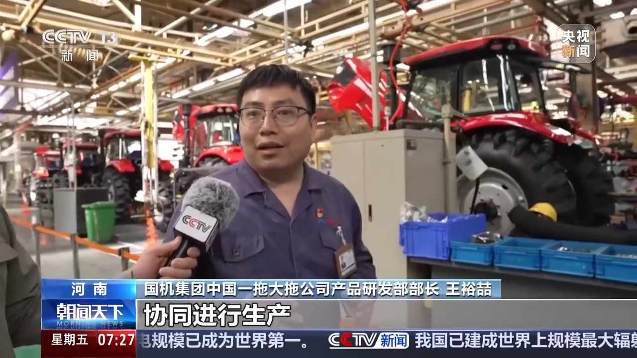 国机集团中国一拖大拖公司产品研发部部长 王裕喆:协同进行生产,中间是通过智能化信息系统,来进行一个高效的协同和串联,也是通过这个信息系统,实际上消除了各生产线之间的独链和孤岛。