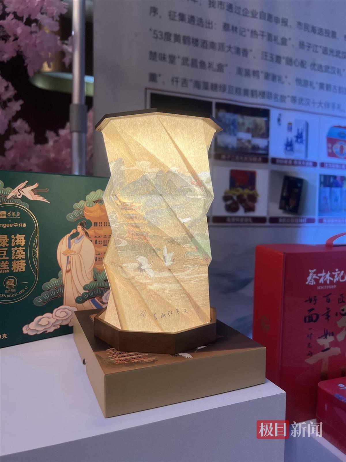 一楼大厅的“武汉礼物”展台处,蔡林记热干面礼盒、汪玉霞糕点、黄鹤楼酒、周黑鸭礼盒等十大伴手礼琳琅满目,在暖黄射灯下泛着光泽,引得嘉宾驻足品尝。“这些伴手礼既是味觉记忆,更是城市文化的微缩表达。”一位嘉宾拿起一个精美的“黄鹤古韵旋转灯”告诉极目新闻记者,“这个礼品太精美了,堪称‘可带走的武汉’,让每位嘉宾都能延续与江城的对话。”