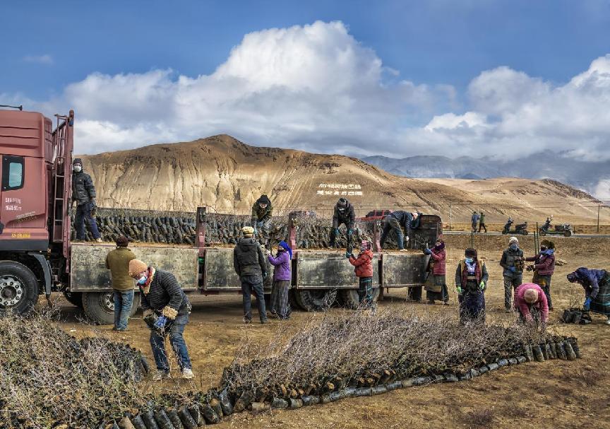 作品简介:(作者自述)拍摄于2023年5月,日喀则市定日县曲洛乡卸沙棘树苗。
