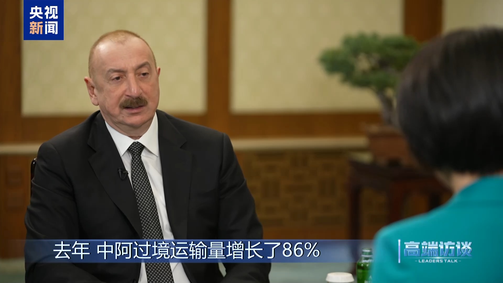 阿利耶夫:你说得没错,阿塞拜疆位于亚欧、南北交汇之处,两条交通走廊贯穿全境。但要成为重要的过境运输国家,首先得与邻国、邻国的邻国都保持良好关系。我们正朝着这个方向努力,并且已取得不少实际成果。