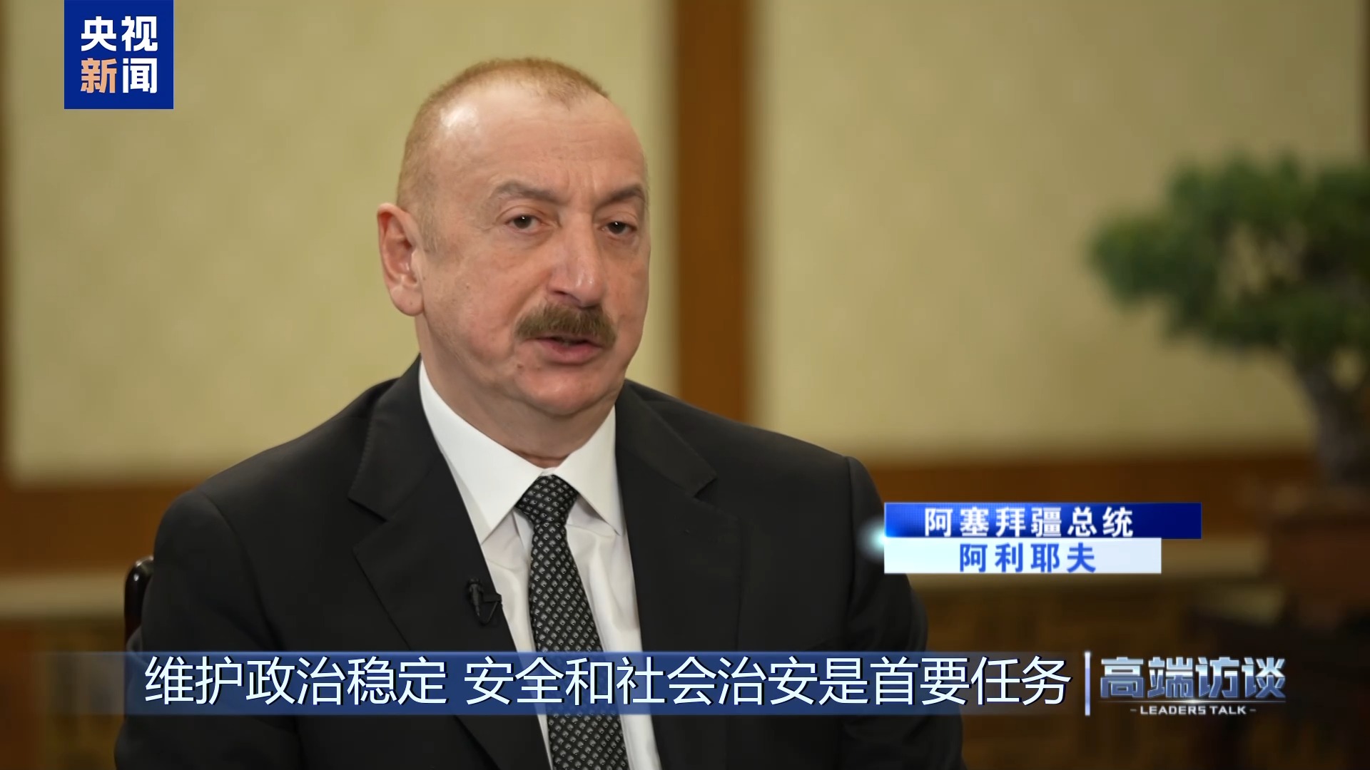 阿利耶夫:是的,我们的关系十分友好。在一次会面中,习近平主席称我为“中国的好朋友”,这对我而言是极高的肯定。我一直非常珍惜与他会面的时光,我们的对话始终坦诚开放。我们的会谈持续很长时间,正式午宴时还在交流。我们探讨的内容涵盖地区稳定、安全问题以及国际关系等诸多领域。对我来说,了解习主席在不同议题上的立场始终至关重要。习近平主席是一位经验极为丰富的政治家,我对他满怀敬意。在维护国家利益以及在全球事务方面,习主席都有着深刻的洞察力和鲜明的立场。你可能知道,阿塞拜疆加入了习近平主席提出的全球发展倡议、全球安全倡议和全球文明倡议。我们认同他提出的这些理念。阿塞拜疆是最早公开支持并参与共建“一带一路”倡议的国家之一,目前已在我们国内实施了多个基础设施建设项目。与习主席的会面总是令人倍感愉悦。习主席是世界上极具影响力国家的领导人,但他为人谦逊、和蔼可亲。每次见面,他都让你感觉仿佛老友重逢。