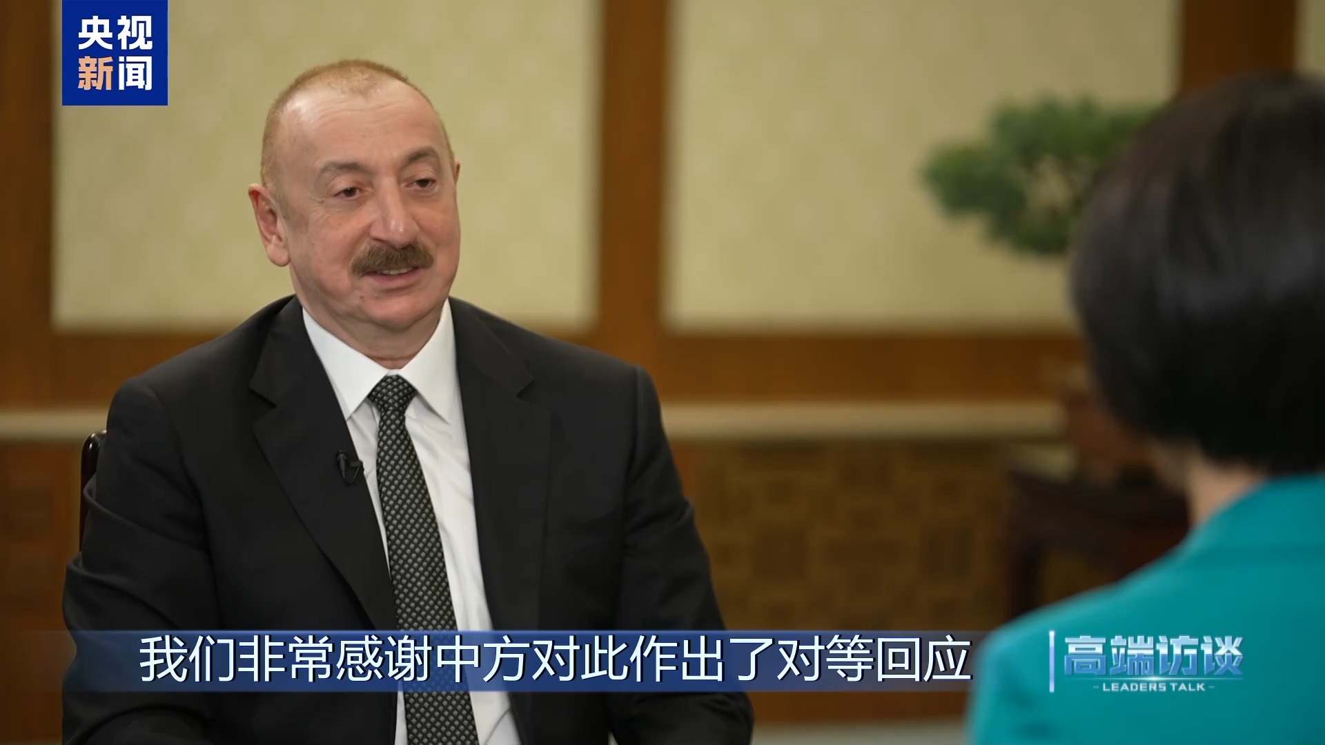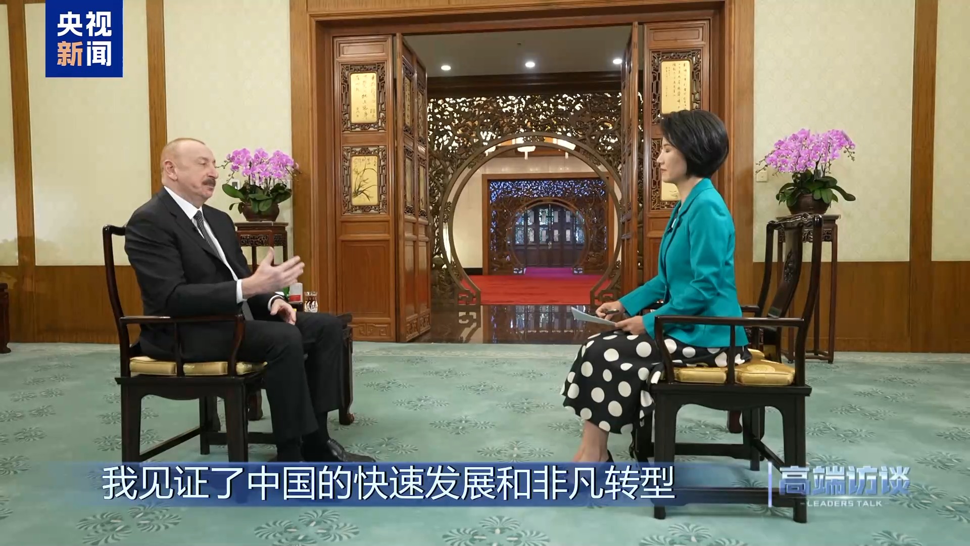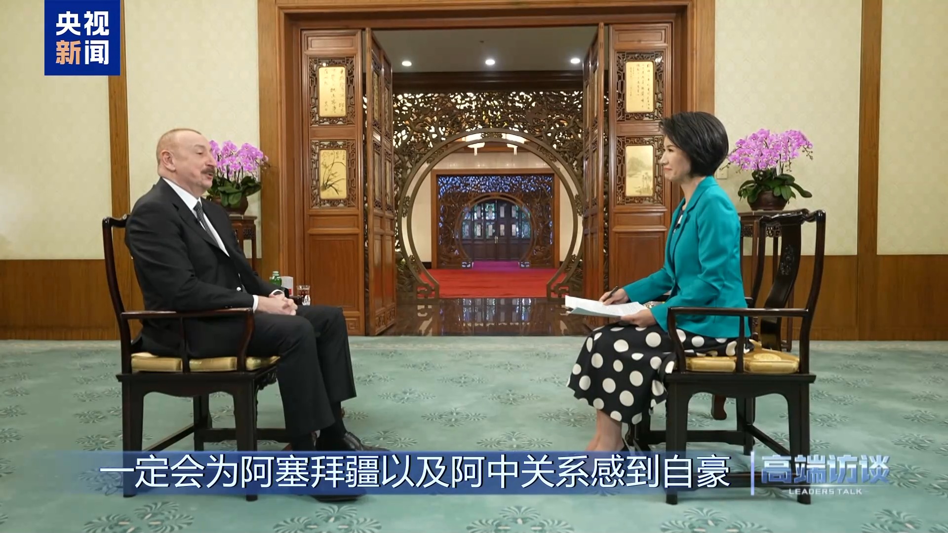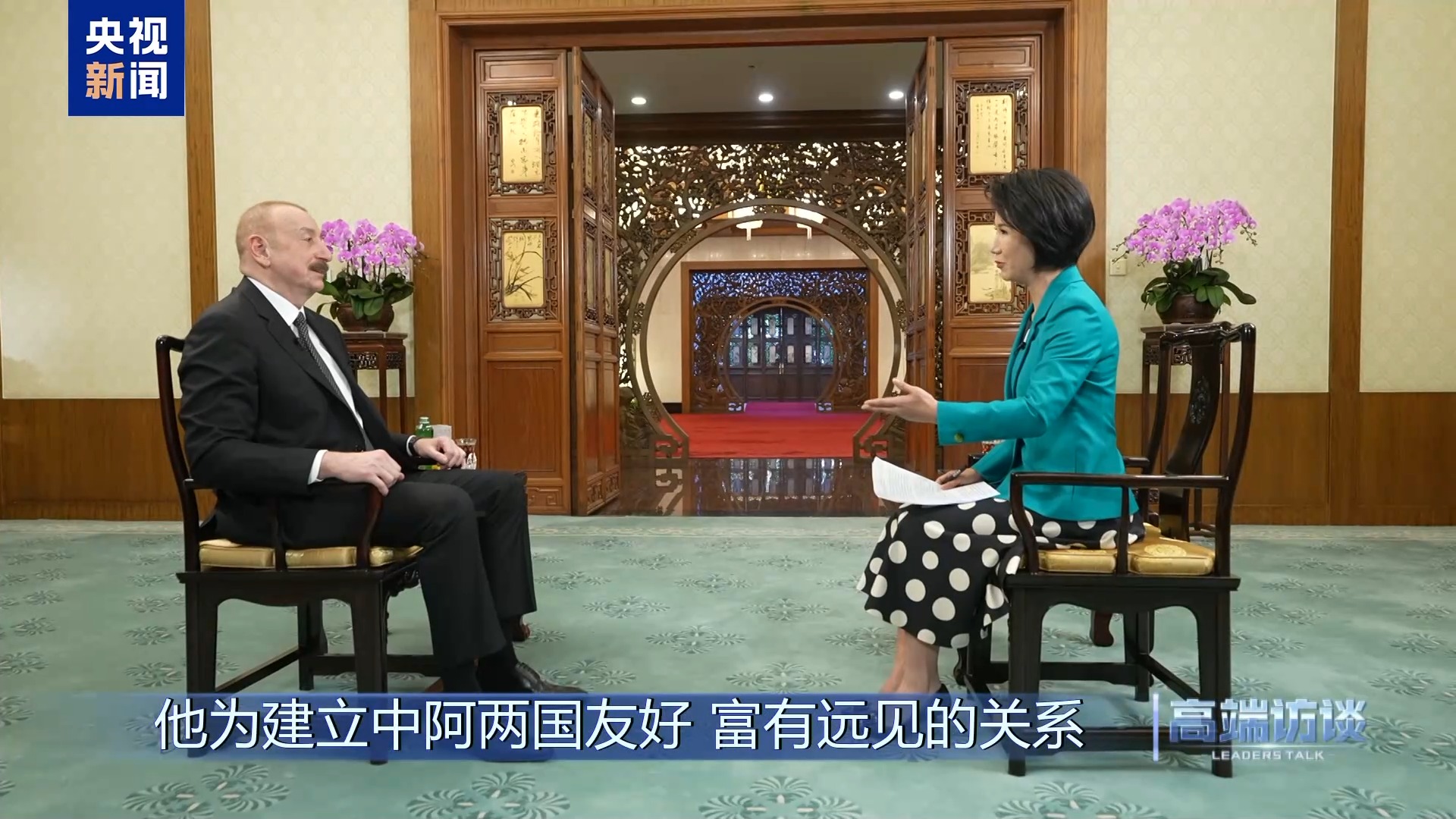 刘欣:在专访中,阿利耶夫总统回顾了中阿两国交往的悠久历史和传统友谊。当谈到建交初心时,他告诉我,他期待两国民众可以更多地感受对方文化与文明的魅力。他表示相信,同为全球南方成员,中阿两国将在全面战略伙伴关系的指引下,携手在多边领域为世界的和平与发展作出更大贡献。
