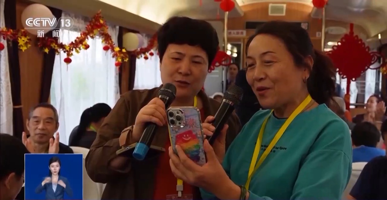 为丰富银发游客出行体验,专列开通以来,列车还根据目的地与沿线城市的人文风情设计了多项特色主题活动,将餐车打造为移动文化大舞台,让车厢内充满了欢声笑语。