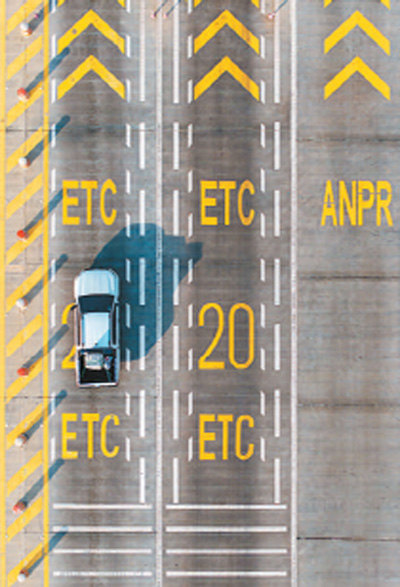 汽车驶过柬埔寨金港高速金边收费站(无人机照片)。张金加摄(新华社发)
