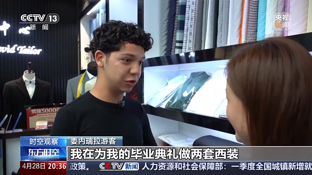 委内瑞拉游客:我在为我委内瑞拉的毕业典礼做两件西装,我姐姐她正在挑选中式连衣裙。