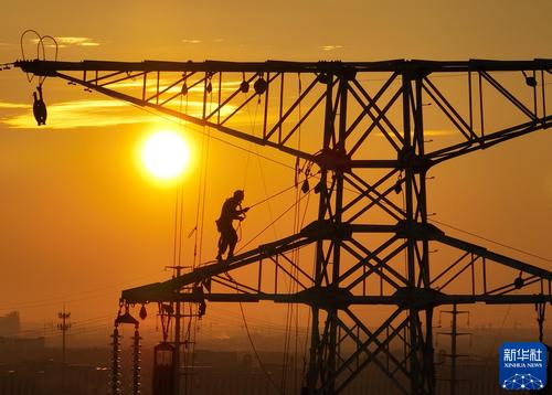 2024年8月6日,220千伏绍嘉输变电工程施工人员开展放线作业。新华社记者 翁忻旸 摄