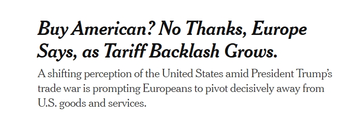 就在刚刚过去的4月,美国对其贸易伙伴征收10%的全面关税,并威胁对包括欧盟在内的许多贸易伙伴征收“对等关税”。特斯拉和麦当劳等美国知名企业明显感受到了欧洲消费者对“美国制造”产品的抵触情绪。欧洲央行在一篇关于消费者行为研究的博文中写道:“美国新征收的对欧洲产品的贸易关税,正让欧洲消费者在购物时三思而后行”,“消费者非常愿意主动避开美国的产品和服务”。