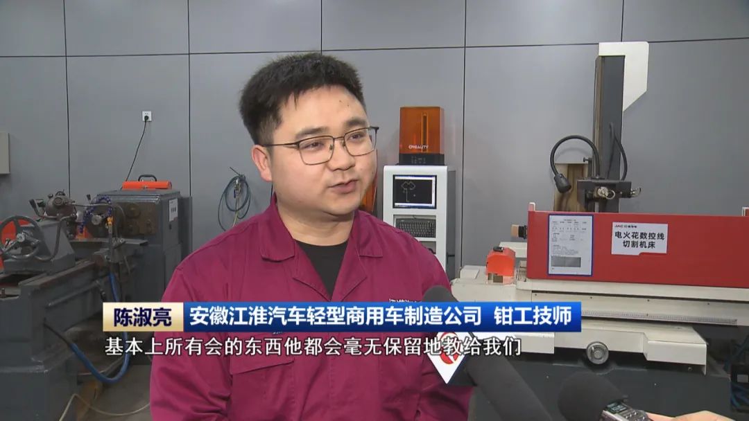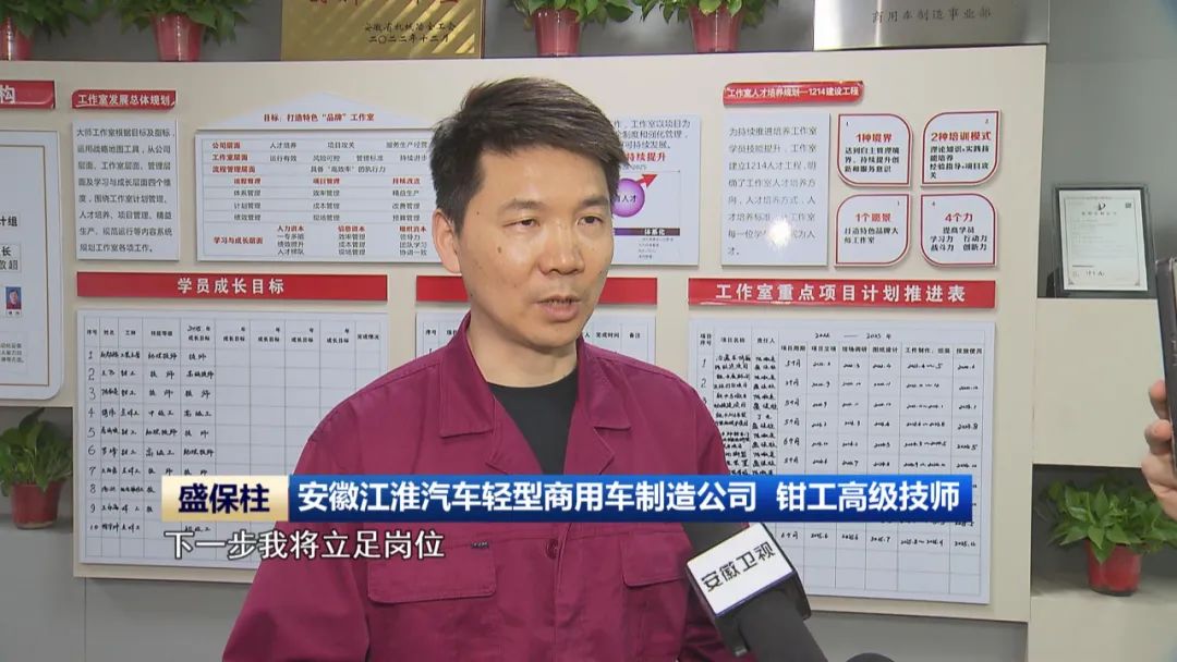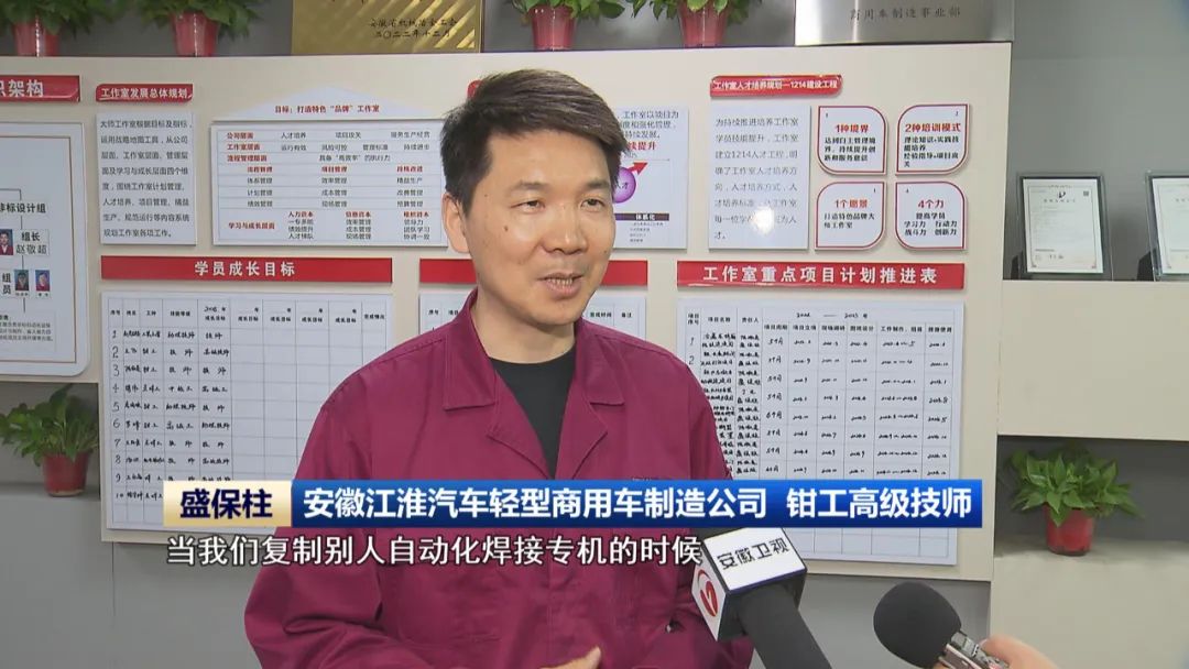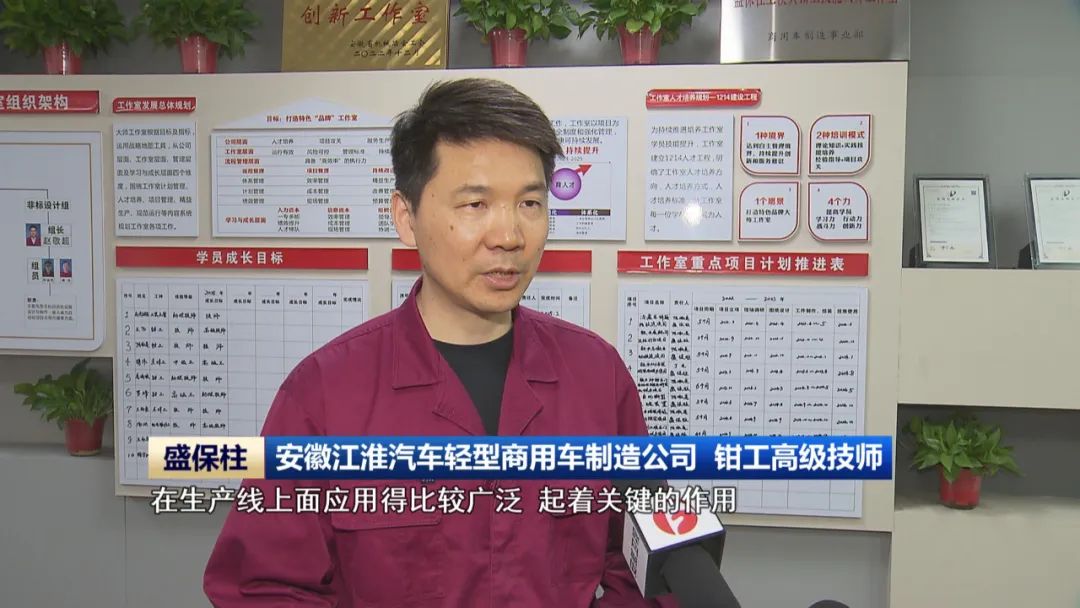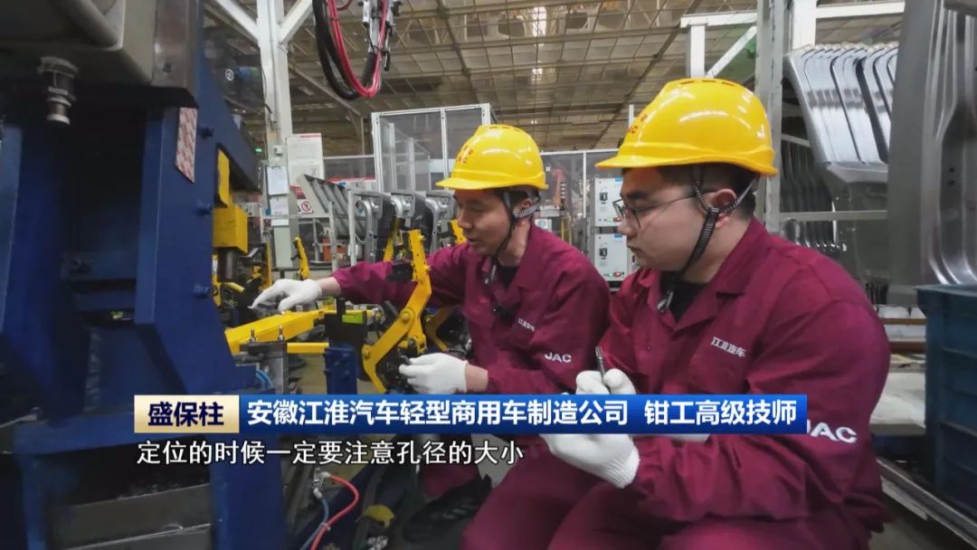 在安徽江淮汽车轻型商用车制造公司的生产车间,盛保柱正手持测量工具,反复校正气动冲孔夹具。这是测量汽车零部件的关键工具,通过他37次的修改,最终将原有0.5mm的误差范围精确到0.01mm,让生产线效率提升了30%。
