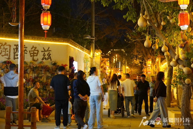 “五一”假期,库车市热闹的夜晚。 孟文静摄