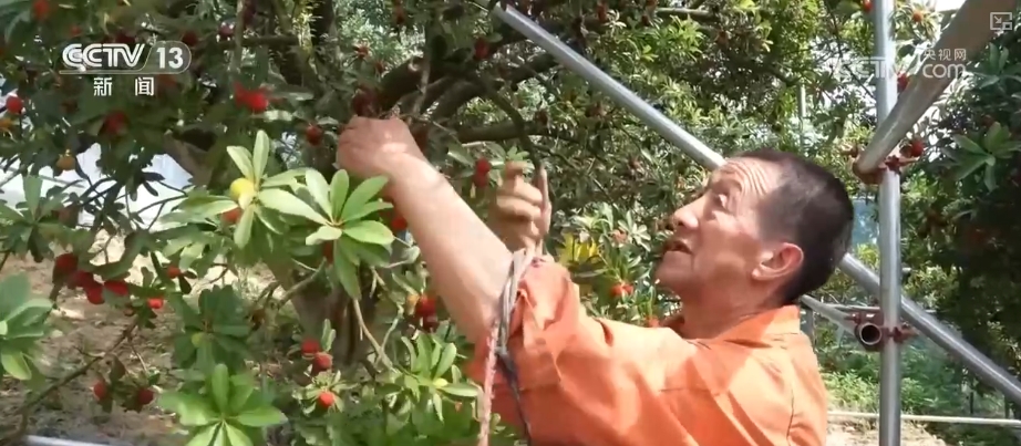 在浙江慈溪市匡堰镇的杨梅山上,连片的大棚依山而建。大棚里,杨梅种植户戚迪锋和几名工人正忙着采摘杨梅。这两天,戚迪锋每天都会接到几十个订购电话。