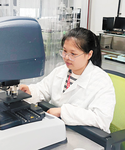 胡素娟利用白光干涉仪测试膜层。姚文硕摄