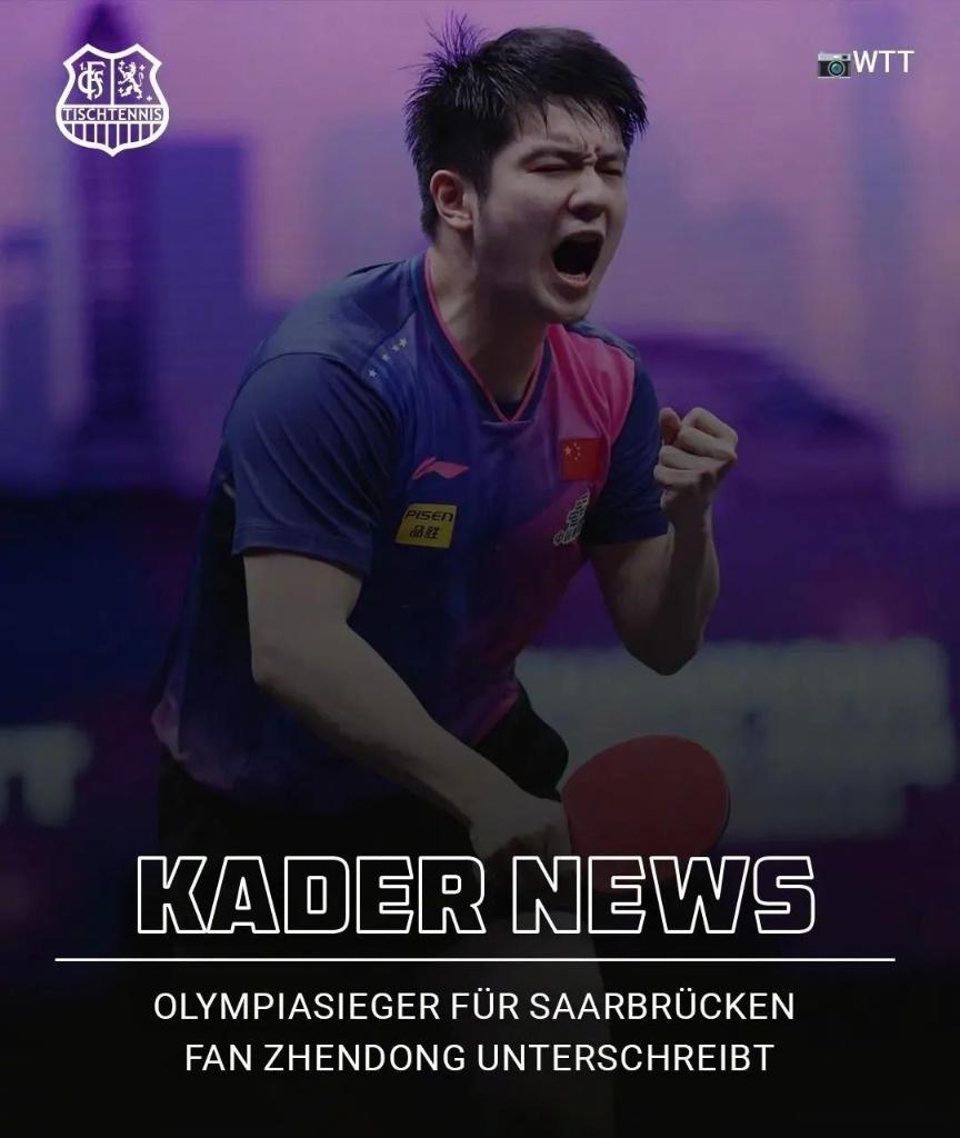 德国乒乓球甲级联赛萨尔布吕肯俱乐部宣布奥运冠军樊振东加盟。