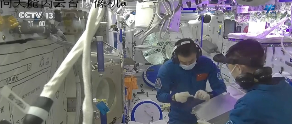 上周,乘组开展了站内环境监测,并对部分设备进行了维护与检测。完成了再生生保系统、乘员设备维护,湿度传感器备件加电测试,舱内设备噪声测量及降噪状态巡检等工作。