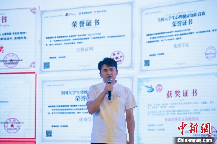 10日下午,麦麦提作为优秀学生代表与学弟学妹进行分享。 西南民族大学学工部供图