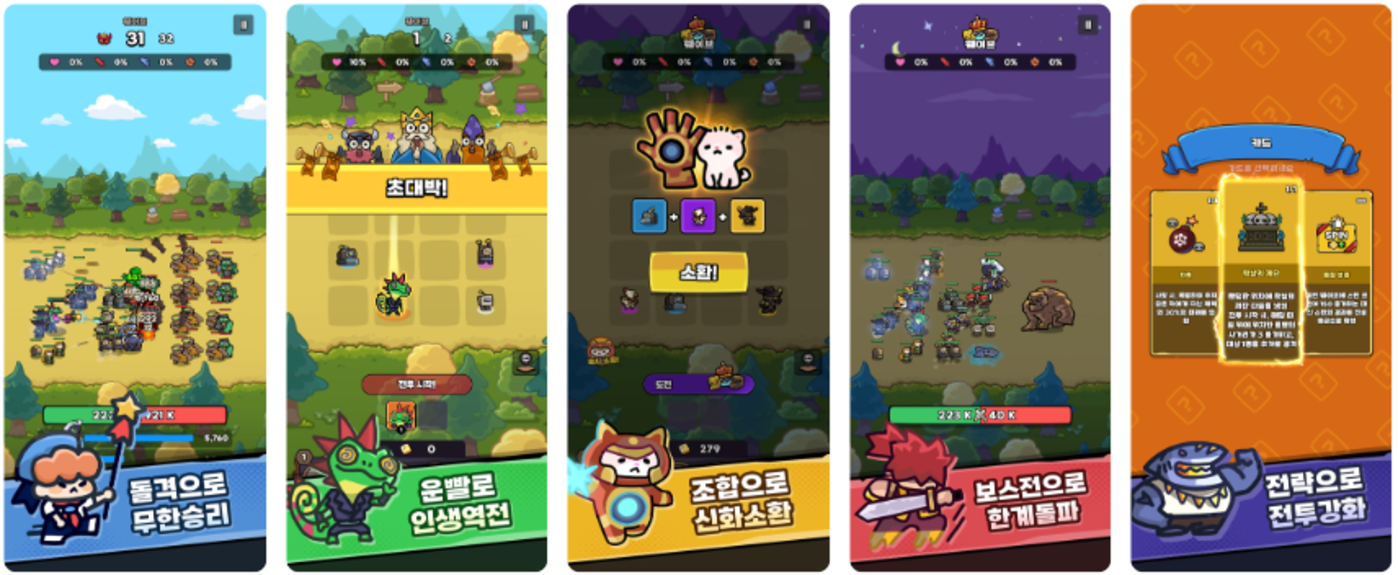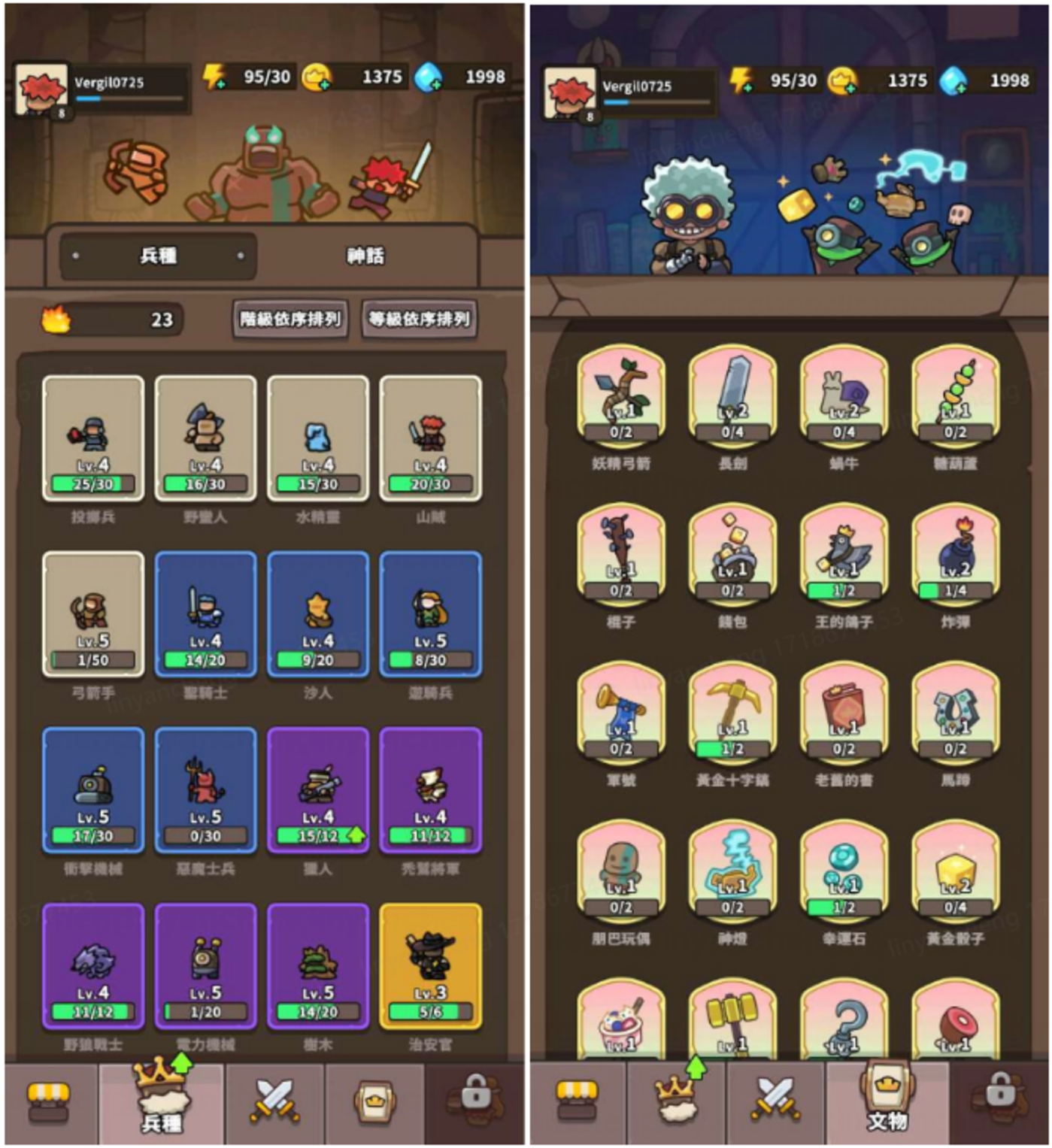 而在英雄合成规则(包括神话英雄的设置)、局外养成等方面其与《Lucky Defense》(下文将详述其玩法)几乎一致。
