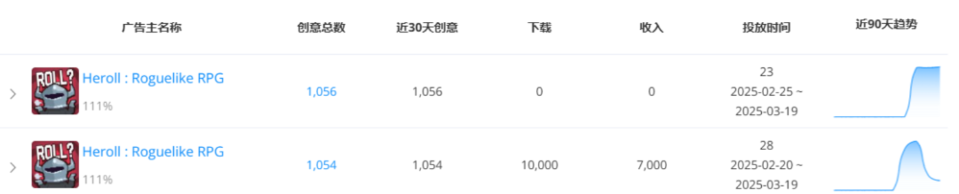 纵观今年头三个月的新游,除了《Heroll : Roguelike RPG》,其他3款虽然包装各不相同,但多少都在自己玩法上迭代了《Lucky Defense》,复用老产品美术素材的产品也有两款,因此111%总体是踩着已有的成功路径做融合和微创新,但与此同时其也在有序的探索新玩法方向。