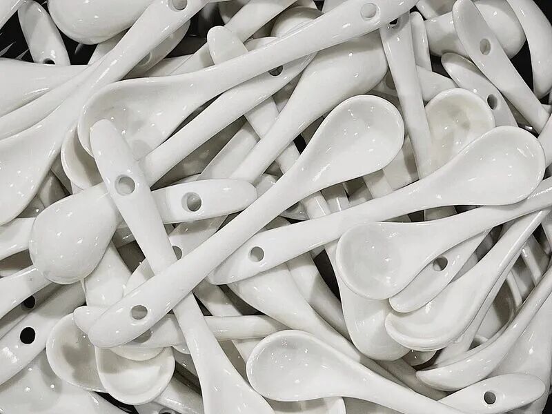工序越复杂,做出来的勺子成本越高,所以说:选择全釉料陶瓷勺的餐厅,应该是在细节里下了功夫的。