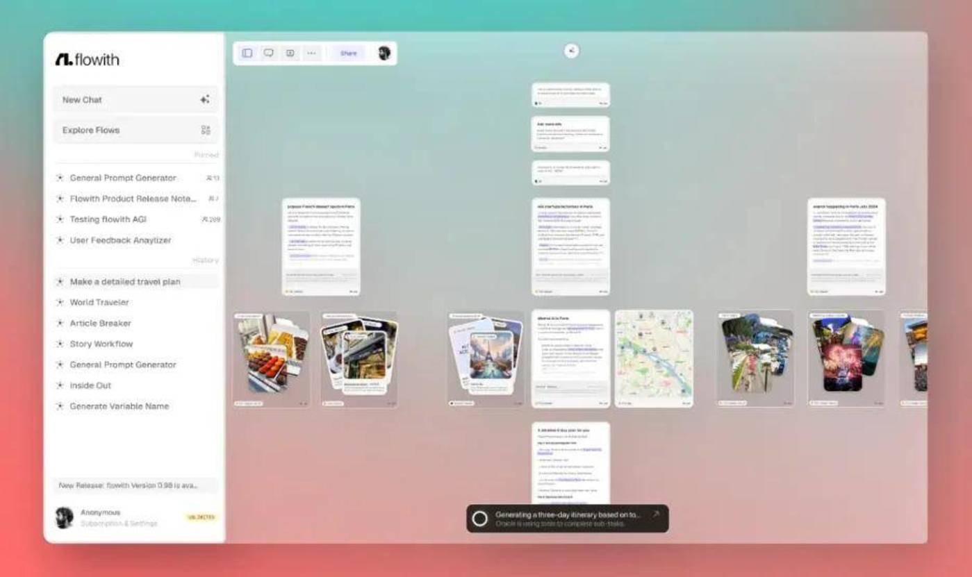 Flowith是一款类似Manus的AI Agent产品,旨在通过其独特的节点式交互方式和强大的AI功能,为用户提供高效、多线程的AI交互体验。它不仅支持多种先进的AI模型,还提供了知识管理、内容创作、自动化任务执行等功能,适合内容创作者、研究人员、企业员工等多类用户