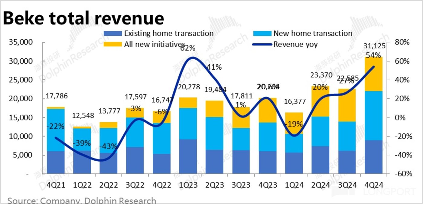 北京时间 3 月 18 日晚美股盘前,$贝壳.US 公布了 2024 年 4 季度财报。整体来看此次业绩表现可总结为,政策利好下暴涨式的规模增长 + 仅增速不增利,弹性甚至为负的利润,具体要点如下: