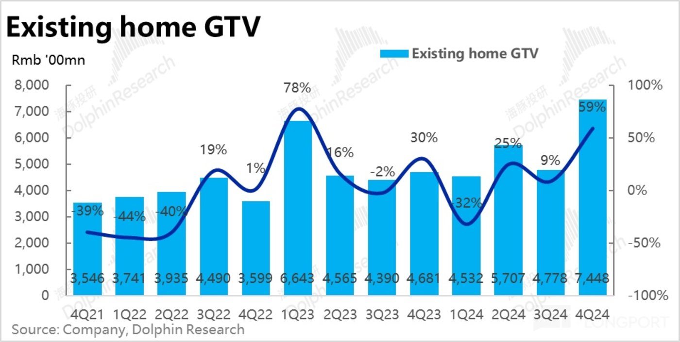 3、以家装、租赁、家居服务为主的二航道本季总收入达到 91.3 亿。看起来并没受到楼市支持政策的利好,随着基数上升,营收增速依旧在平稳放缓趋势内,本季为 39%,略微好于市场预期。