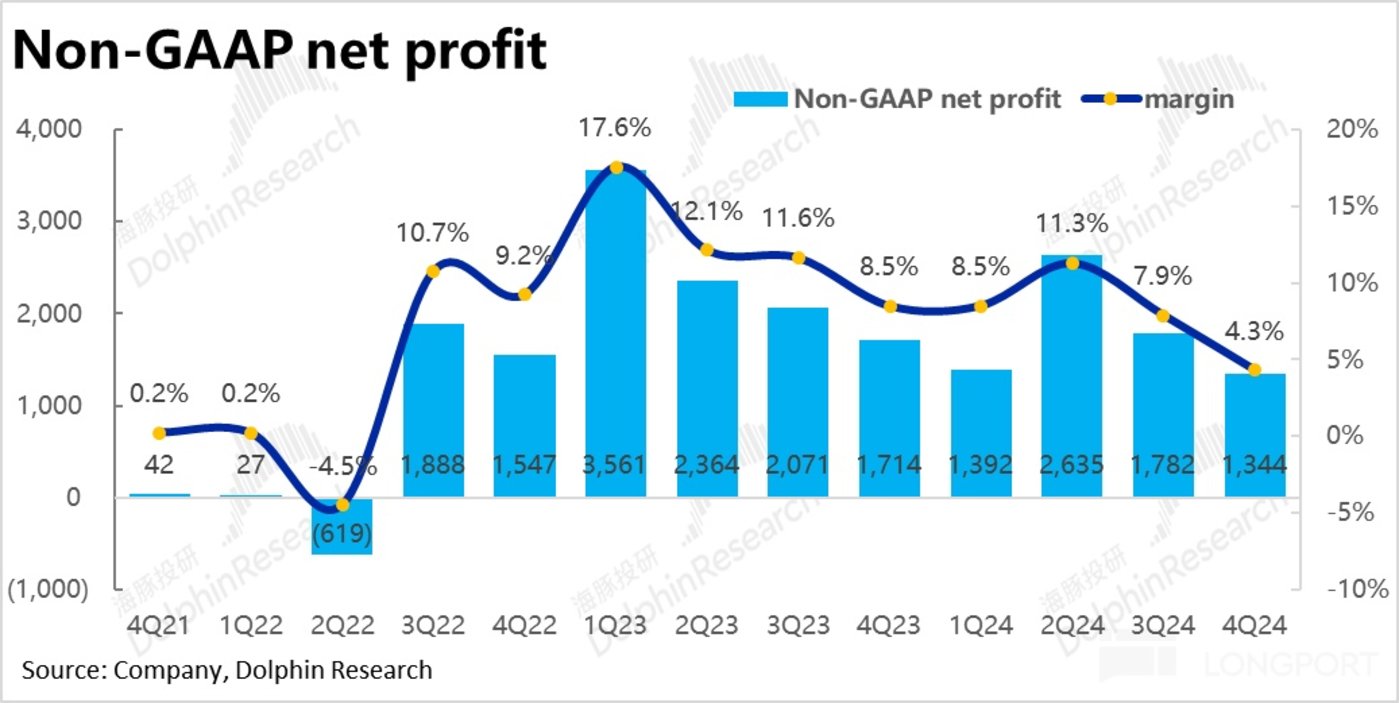 虽然,海豚投研并不认为应当过分强调短期利润的影响,而妄加评判现在重回扩张是对是错,毕竟管理层在改变策略重新重视利润上,永远有转弯回头的机会。但也确实会让市场在如何看待公司后续利润增长的问题上多一层担忧。毕竟在宏观环境已经明显改善的情况下,都没能释放出增量利润。那么在公司仍处于投入周期内时,是不是应该降低对利润释放的预期?这是需要管理层解答的问题。