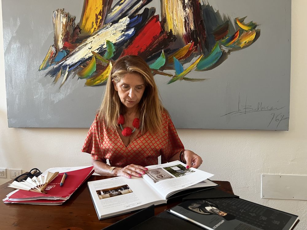 7月4日,在意大利马切拉塔,马切拉塔市政府文化部门负责人卡蒂乌莎·卡塞塔翻阅利玛窦相关书籍。新华社记者李彦南摄