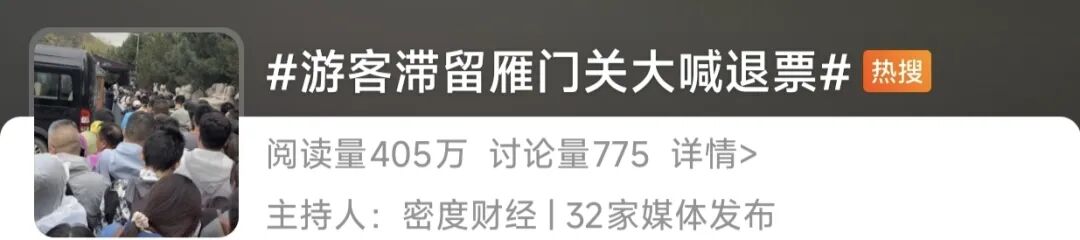 10月4日下午3时许,有网友发文称:“我揣着火热的心想去一下雁门关,可你给我拒绝在了八公里以外,用时速一公里的速度前行,最后退票走人。”