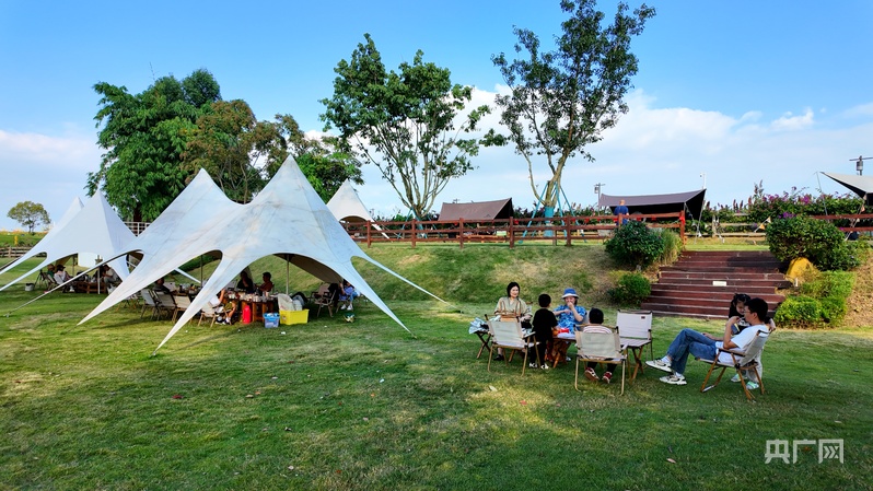 游客们在露营区休闲娱乐(央广网记者 昌思荣 摄)