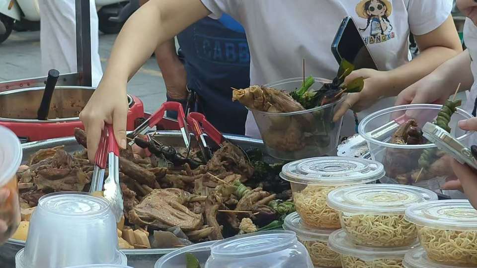 记者看到,售卖过程中,后期有顾客想要卤汤,文女士表达歉意称已经卖光了,此前文女士用勺子刮桶底,尽可能给顾客浇汤。