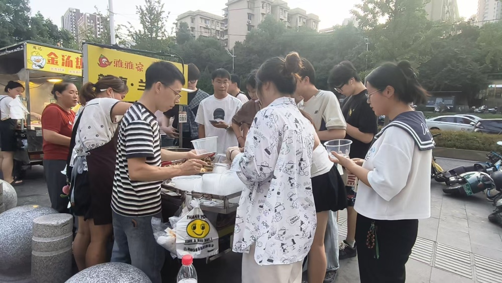 夫妻二人表示,多数摆摊者可能都会遭遇共性或各自的困难。“像湖南夏天天气比较热,(摊主们)都得在外面站着,风扇里的风是热风,冬天还要发愁食品加热,现在很快能卖完已经很开心,之前就像更多人一样需要站很久。”
